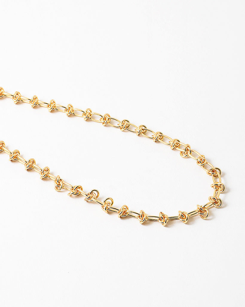 A delicate chain of interlinked gold-tone love knots, symbolizing unbreakable bonds and timeless elegance. Designed in South Korea with premium craftsmanship for a polished, versatile look.